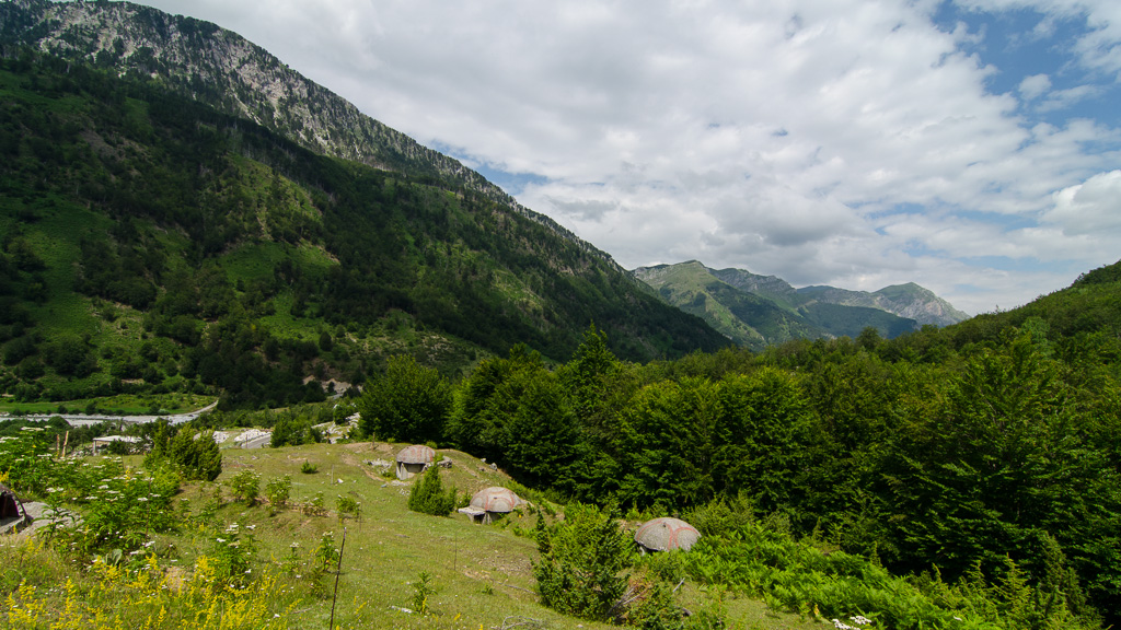 Um bis ans Talende zu kommen, fährt man dann noch kurz durchs Flussbett um dann kurz danach das “Ende der Welt” zu erreichen. Es führen zwar noch befahrbare Wege weiter, aber diese dürften nach kurzer Zeit auch verschwinden. Man merkt auch, dass es sich immer schon um ein sehr abgeschlossen gelegenes Tal gehandelt haben muss. Während der Diktatur gab es nur einen Weg über die Berge nach Shkodar runter, auf dem man per Eselskarren bestimmt einige Tage unterwegs war. Heute erfolgt die Versorgung v.a. über die Nachbargemeinde auf montenegrinischer Seite.