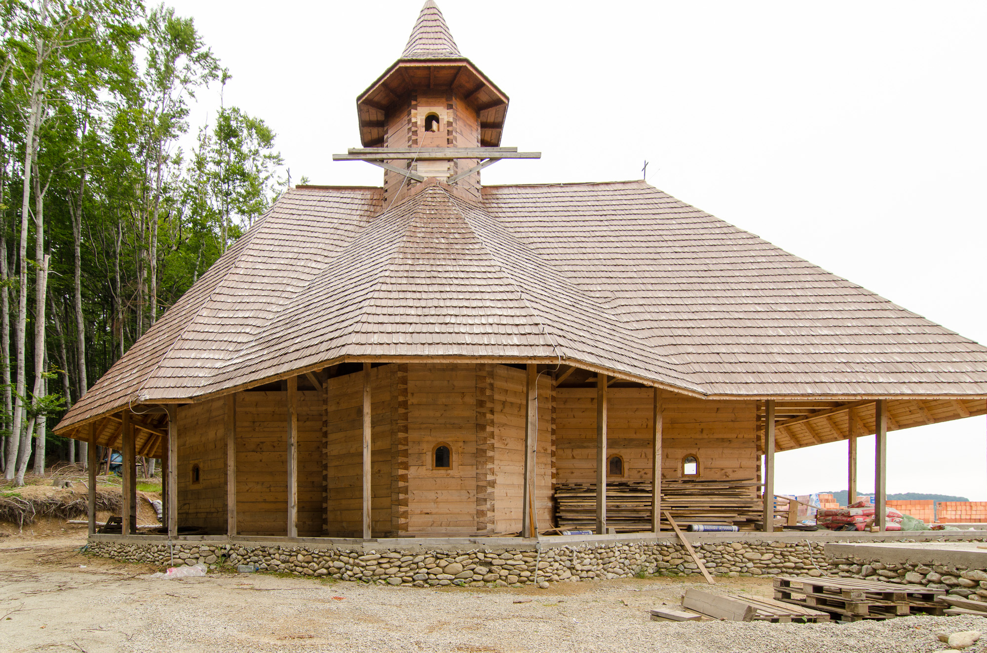 Vorbei an einer Holzkirche, die noch im Bau ist. Wir haben auch mal rein geschaut. Auch innen alles komplett aus Holz.