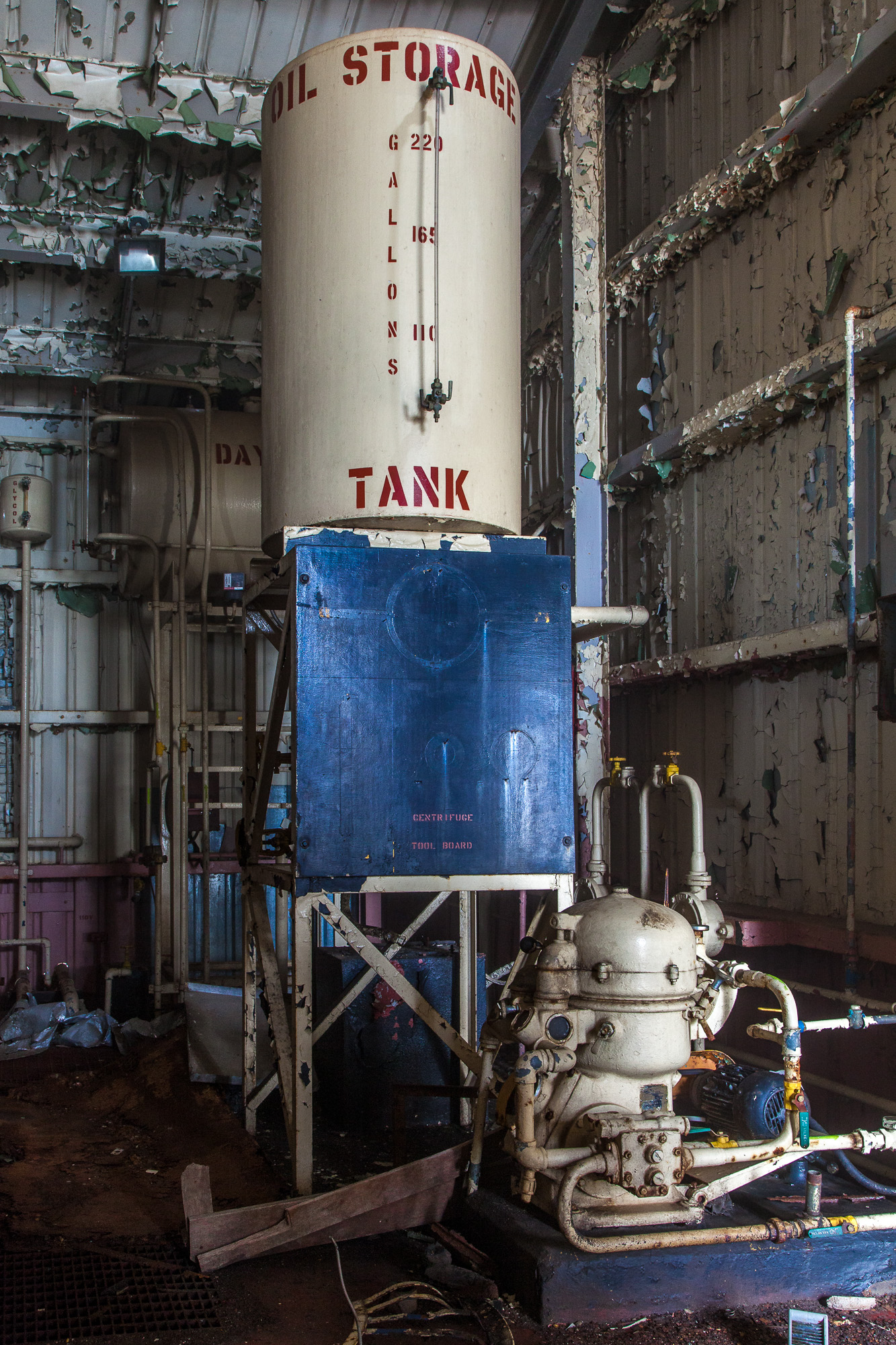 Vieles von der verwendeten Technik wurde einfach stehengelassen. So befinden sich in einem Gebäude noch 4 Schiffsdiesel, die vermutlich als Stromgeneratoren verwendet wurden.