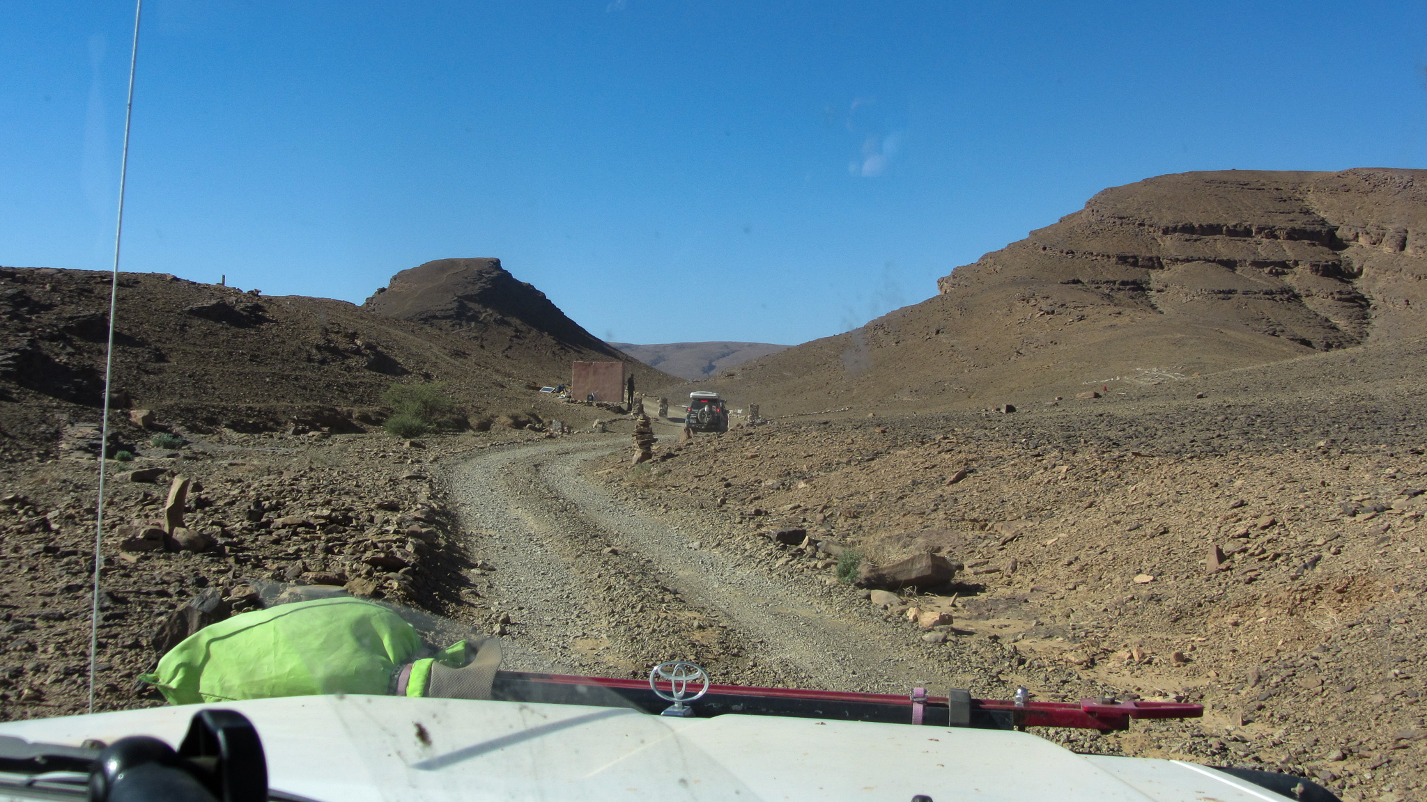 Um vom Lac Iriki nach Foum Zguid zu kommen, gibt es zwei Möglichkeiten. Auf direktem Wege über eine Schrabbels-Piste, oder man fährt eine kleine Schleife durch das südlich von Foum Zguid gelegene Gebirge. Die direkte Piste hab ich aus 2012 in ganz schlechter Erinnerung. Übelstes Wellblech, für das einfach keine passende Geschwindigkeit zu finden ist.
