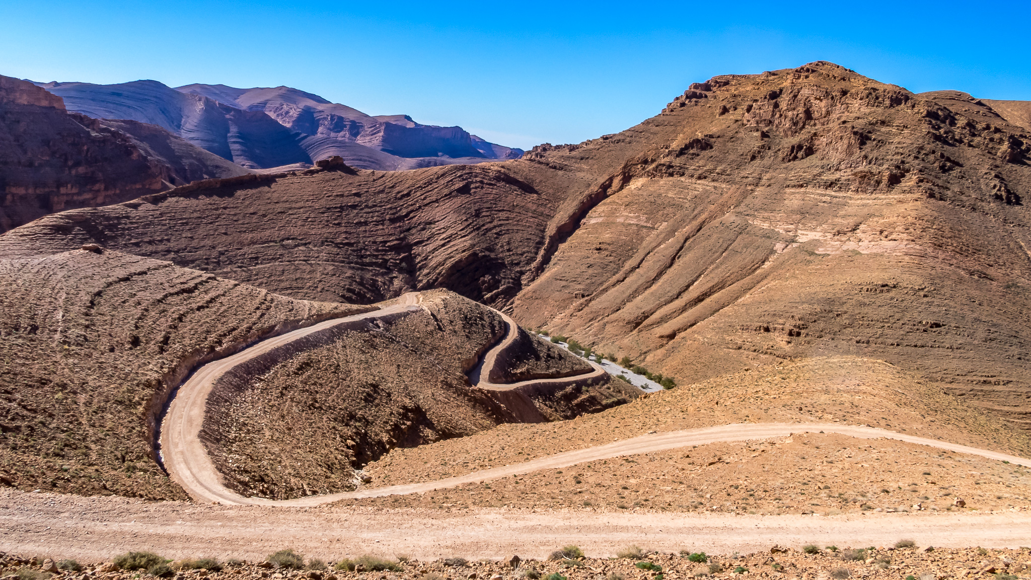 Die Piste schlängelt sich zuerst in mehreren Kehren den Berg runter ins Tal, um nach 14 Kilometern eigentlich am Rand eines ausgetrockneten Flussbettes weiter zu gehen. Stefan hatte die Piste auch als gut befahrbar beschrieben. Allerdings hatten sich seit dem letzten Jahr die Verhältnisse vor Ort geändert.