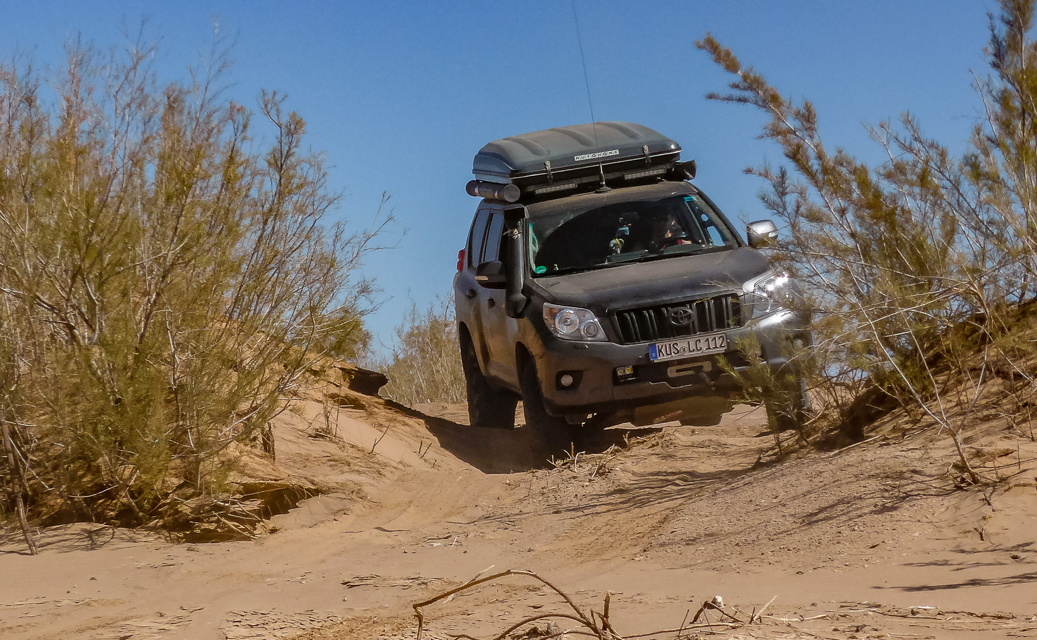 Die Navigation ist wie jedesmal, du hast einen oder mehrere Tracks dabei, die du selber schon gefahren bist. In 15 Monaten hat sich die Landschaft aber so verändert, dass der alte Track nur noch dabei hilft, ungefähr die Richtung zu halten. So verliere ich dieses Mal das Flußbett nach kurzer Zeit aus dem Blickfeld und muss den Weg durch kleinere Dünenfelder suchen. Auch diese kleinen Dünen machen allerdings bereits viel Spaß.